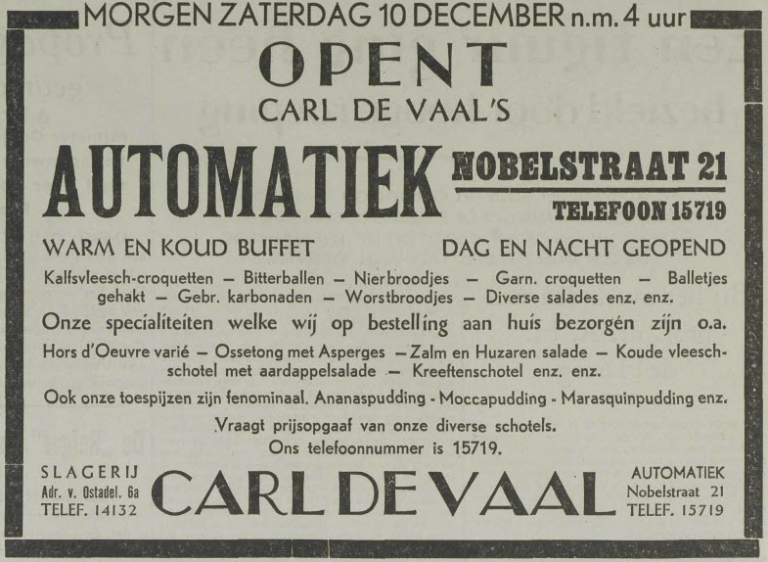 Carl de Vaal’s automatiek heeft dag en nacht de heerlijkste spijzen op voorraad. UN, 9 […]