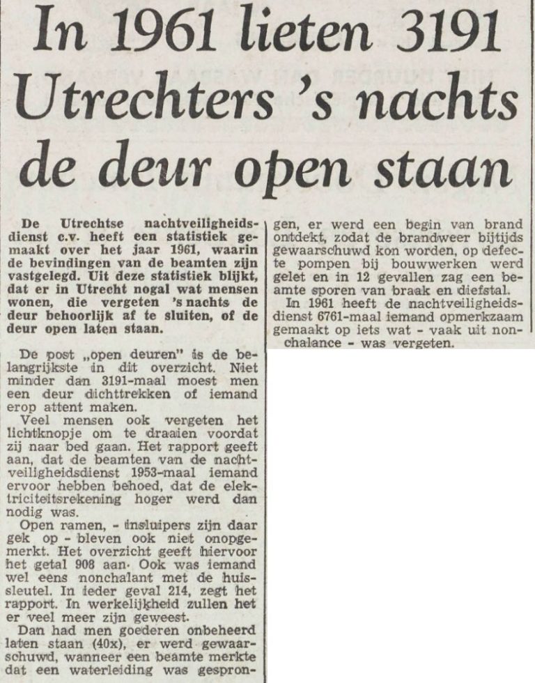 Utrechters laten ’s nachts opvallend vaak de deur open staan. UN, 6 januari 1962, pagina […]